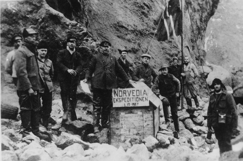 Bouvet Island is part of Norway. It has been since a Norwegian crew landed on it in 1927. Their claim to the land was originally disputed by the British (who else?), the latter claiming the sailor George Norris made contact with the island almost a century earlier. But that guy was maybe crazy and also reported landing on a second island nearby, which later turned out to be a phantom island. Also, his coordinates were off. So the island went to Norway. Here are some Norwegians staking their claim.